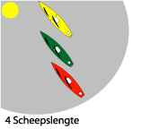 Een boot met "overlap" aan de binnenzijde heeft rechten bij de boeironding vanaf het binnenvaren van de "4 scheepslengten" van een (ruimwindse) boei.