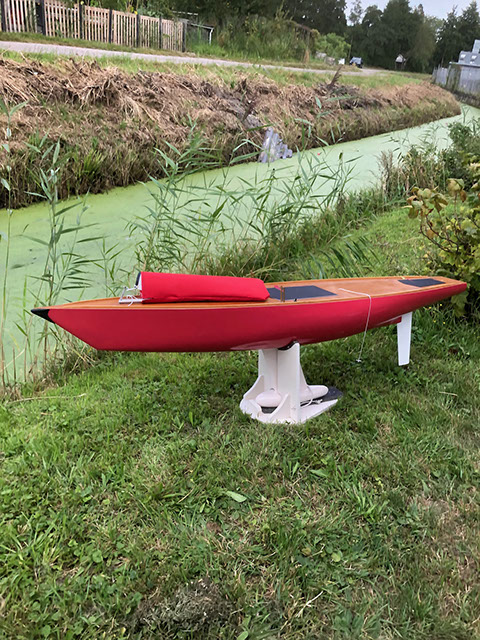 Dit jacht is helemaal opnieuw gelakt in de DD lak met als extra een bijzonder opvallend ontwerp.