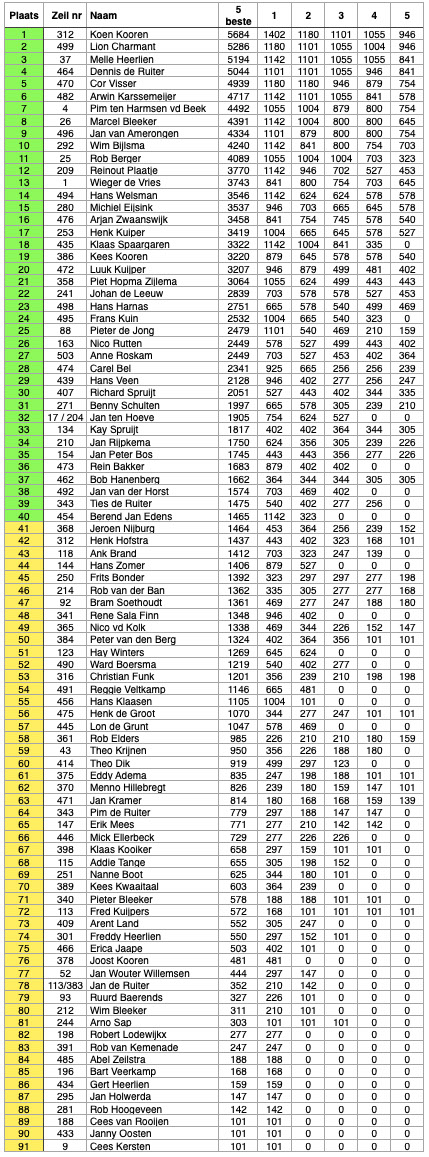 Nationale ranglijst 25/26 K-klasse score van 23 maart 2026