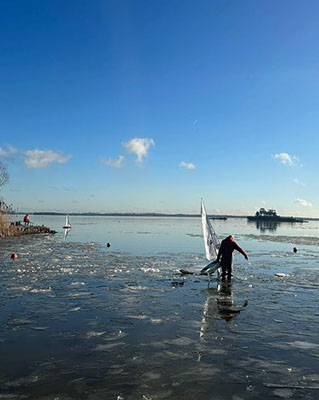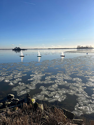 Woensdag 14 januari, prachtig mooi weer en zo'n zin om te zeilen. Maar ja, ijs. Wat doe je dan? Breken en wachten op wind. Zo doen ze dat in Biddinghuizen