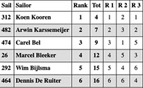 Na afloop van de series plaatsten de beste drie zeilers van elke vloot zich voor de finales. Dat waren de nummers K26, K464, K474, K482, K312 en K292. De finale bestond uit drie wedstrijden.