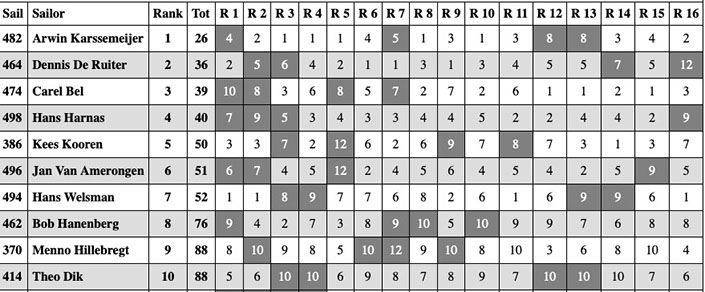 Beste wensen en weer veel zeil plezier voor het nieuwe jaar. En Marcel weer bedankt voor het bijhouden van de ranglijst.