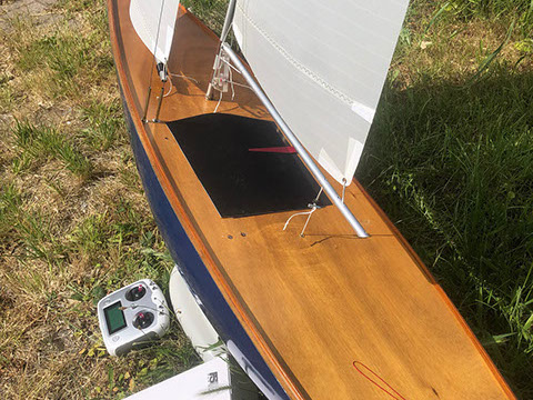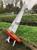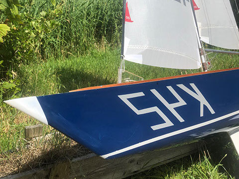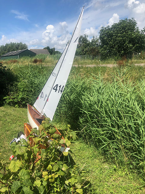 Zelfs het zeilnummer op de romp is nog volgens de eerste klassevoorschriften. Zeilklaar, mast erop en zeilen maar